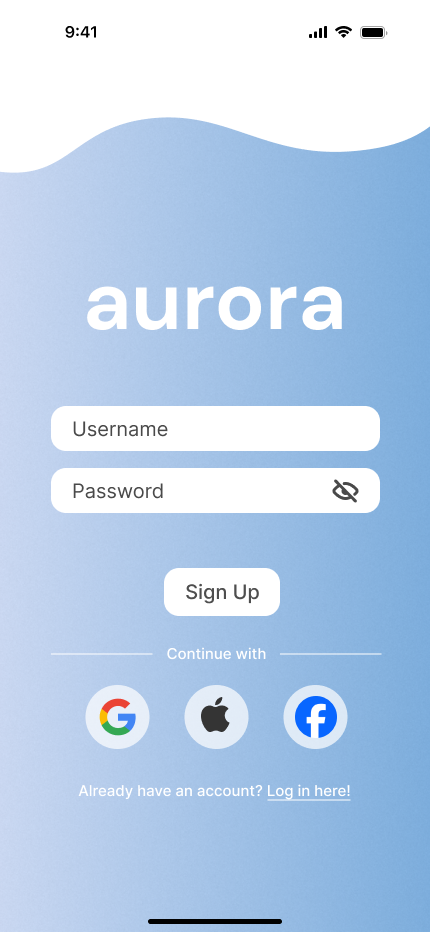 The prompt for this Design-a-thon was to "Design your own digital application or product that fosters cultivation of creative expression to create a more inclusive and equitable society." We spent a long time brainstorming and discussing potential ideas and flushed out a few: Happy Accidents!, Accessibility in Art, and what would become Aurora.