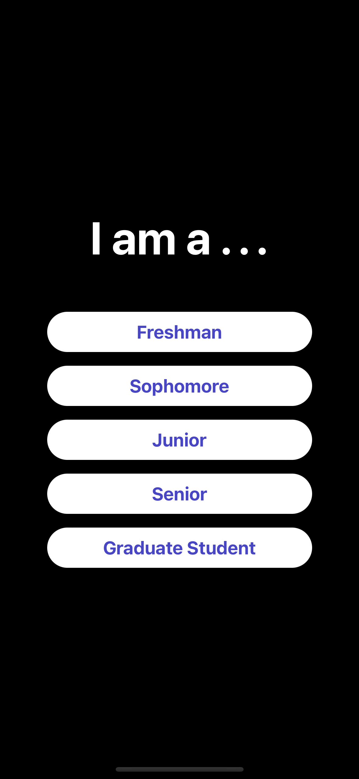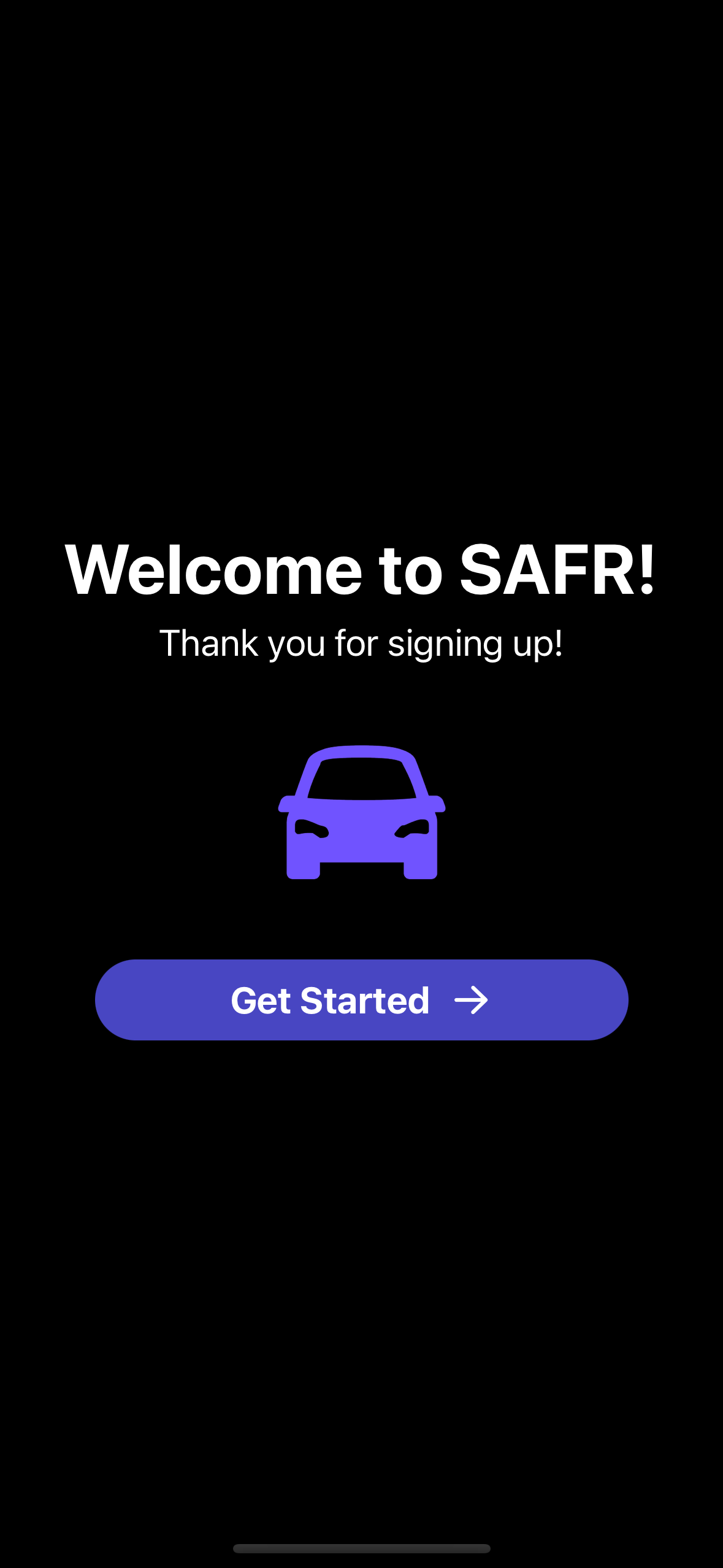 To ensure safety for riders and drivers, SAFR is restricted so that only students with a college-affiliated email can sign up. This allows users to feel more at ease when using the app, as others in the community are somewhat "familiar". If someone who is not a college student attempts to sign up, they will be notified that they are unable to do so. If the user is a college student, they can continue and provide some demographic information about their school year and gender identity to enhance driver-rider pairings, which will be done randomly to ensure utmost safety for both parties. Neither the driver nor the rider will be able to choose their match. Next, the user selects their school and then enters their email to get their account verified. Once the user is verified, they can get started!