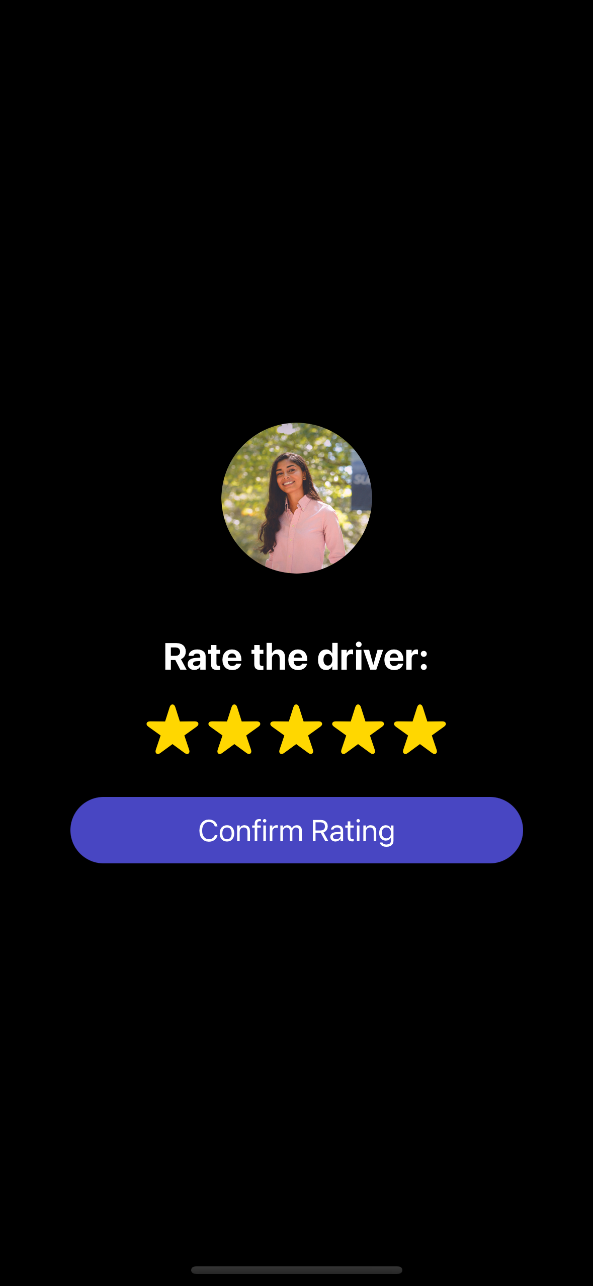 Lastly, after the ride is over, the user can rate their driver, which will contribute to the driver’s profile so that other riders can gain insight about them in the future.