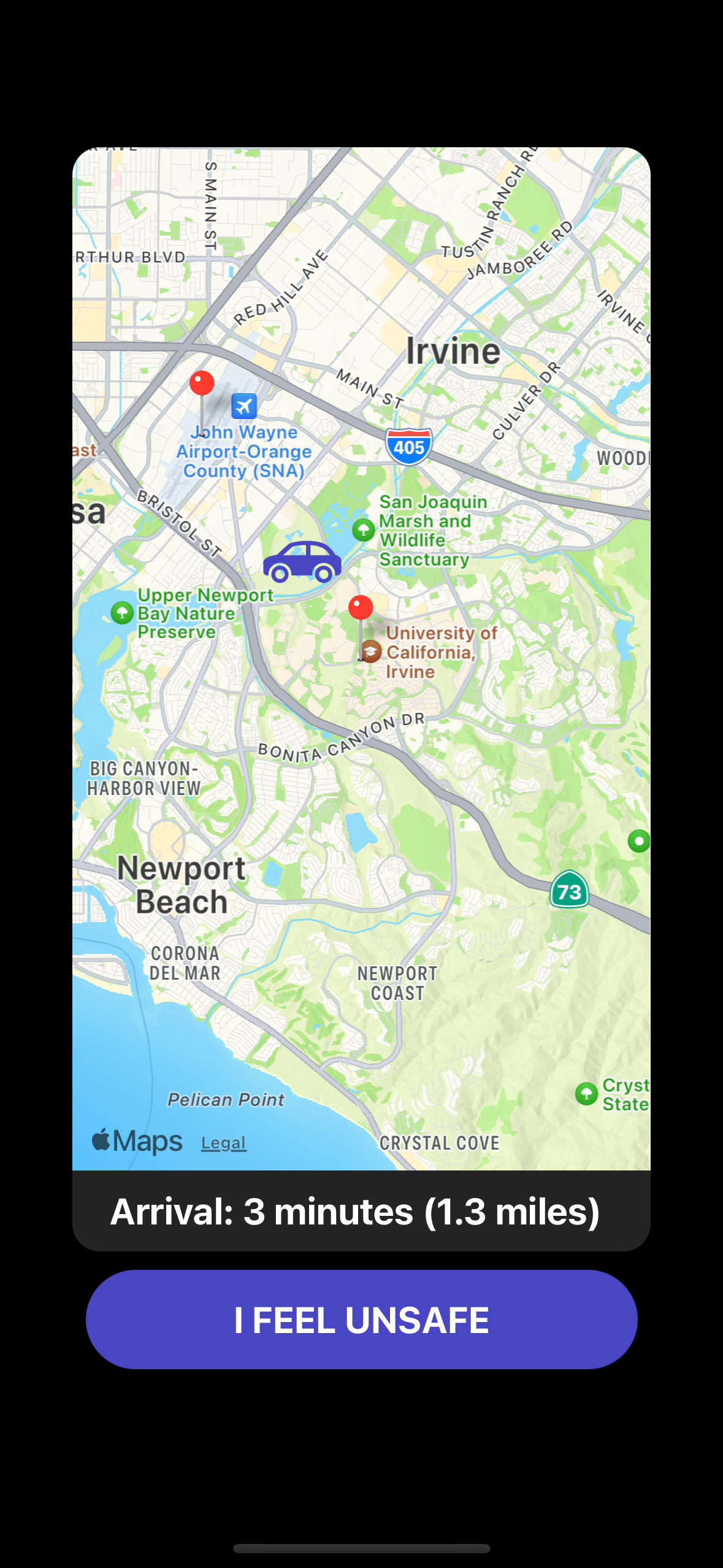 During the ride, a map will display the user’s current location en route to the destination, with an estimated time of arrival. There will also be an “I feel unsafe” button, which will call 911 after the user confirms, as a safety precaution.